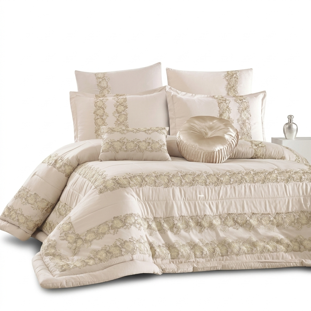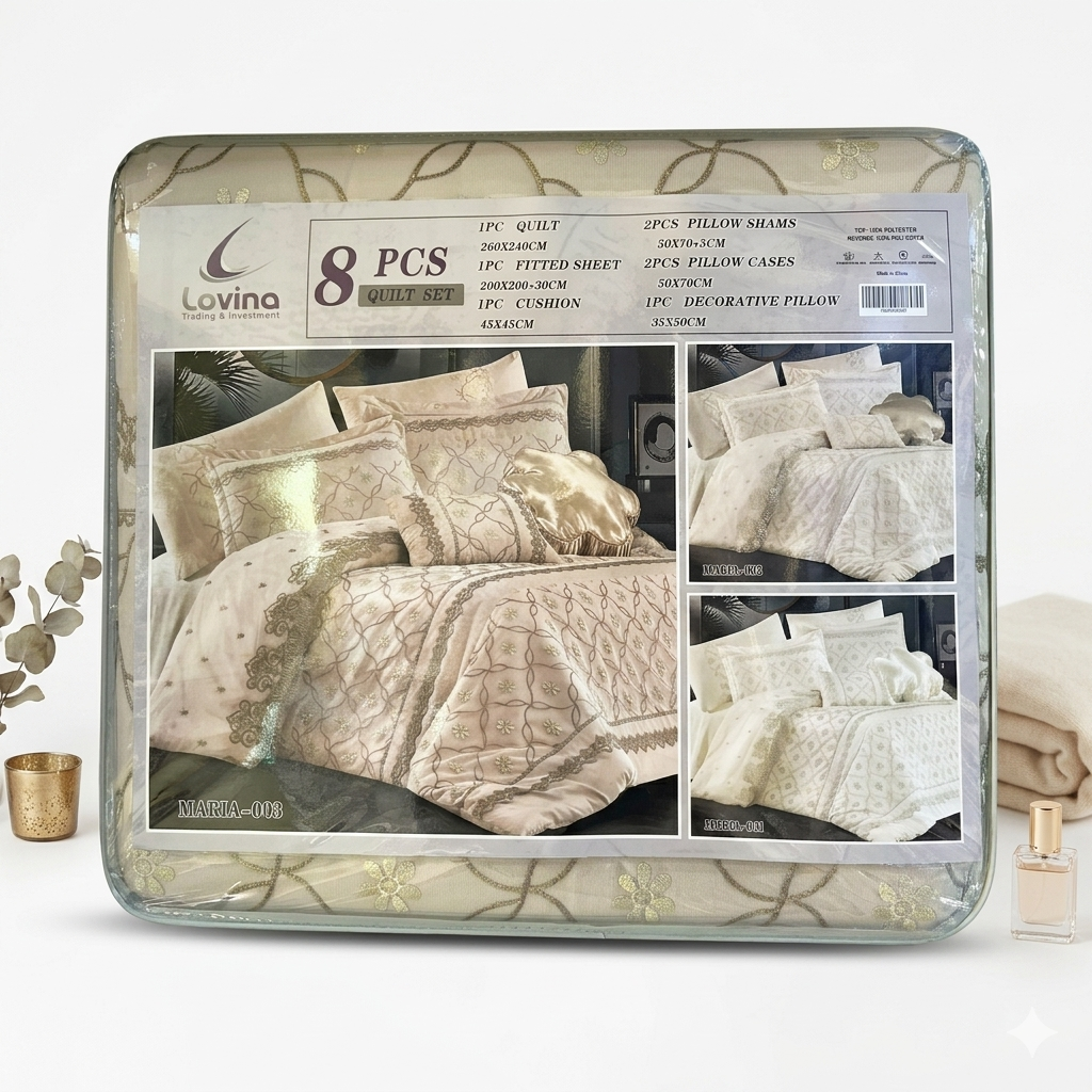 حرام 8 قطع أنيق و فاخر بتفاصيل ناعمة مستوحاة من الطبيعة، يضيف إحساساً بالدفء والهدوء لغرفة النوم، مع لمسة رومانسية راقية.
