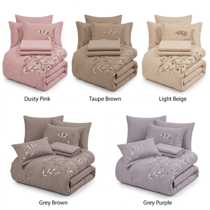 استمتع بتجربة نوم هادئة مع طقم “مدينة” من لوفينا (Lovina). يتميز هذا التصميم بتطريز رقيق لأغصان الزهور الصغيرة التي تمنح السرير مظهراً حيوياً وناعماً في آن واحد. الخامات المختارة بعناية توفر لك الملمس المخملي والدفء المثالي، مع الحفاظ على مظهر متماسك وأنيق يدوم طويلاً.